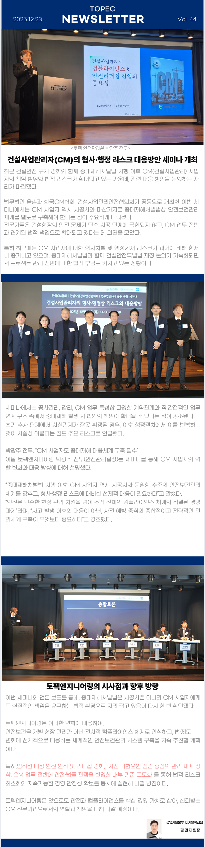 이번 안전관리실 박광주 전무께서 세미나 참석 내용을 공유합니다.