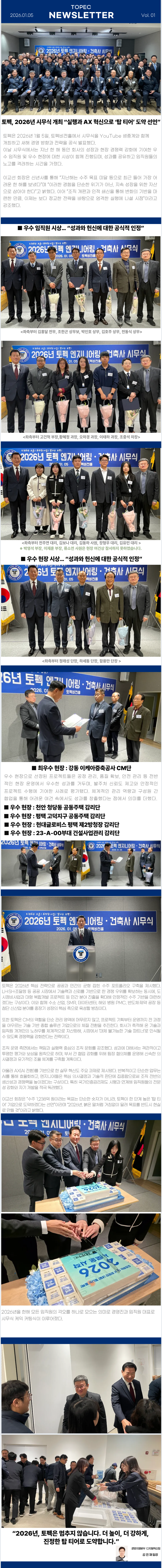 오늘 2026년 시무식 및 우수사원, 현장 표창이 이루어졌습니다 .