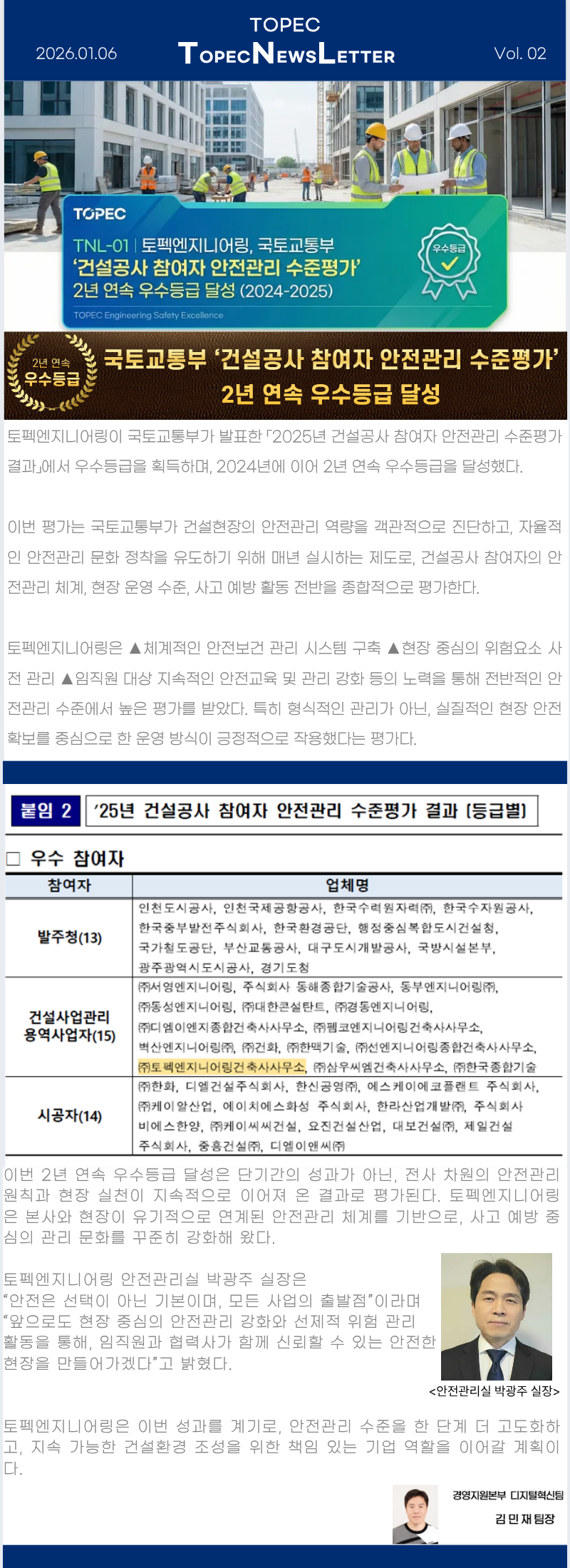 국토교통부 '건설공사 참여자 안전관리 수준평가' 2년 연속 우수등급 달성