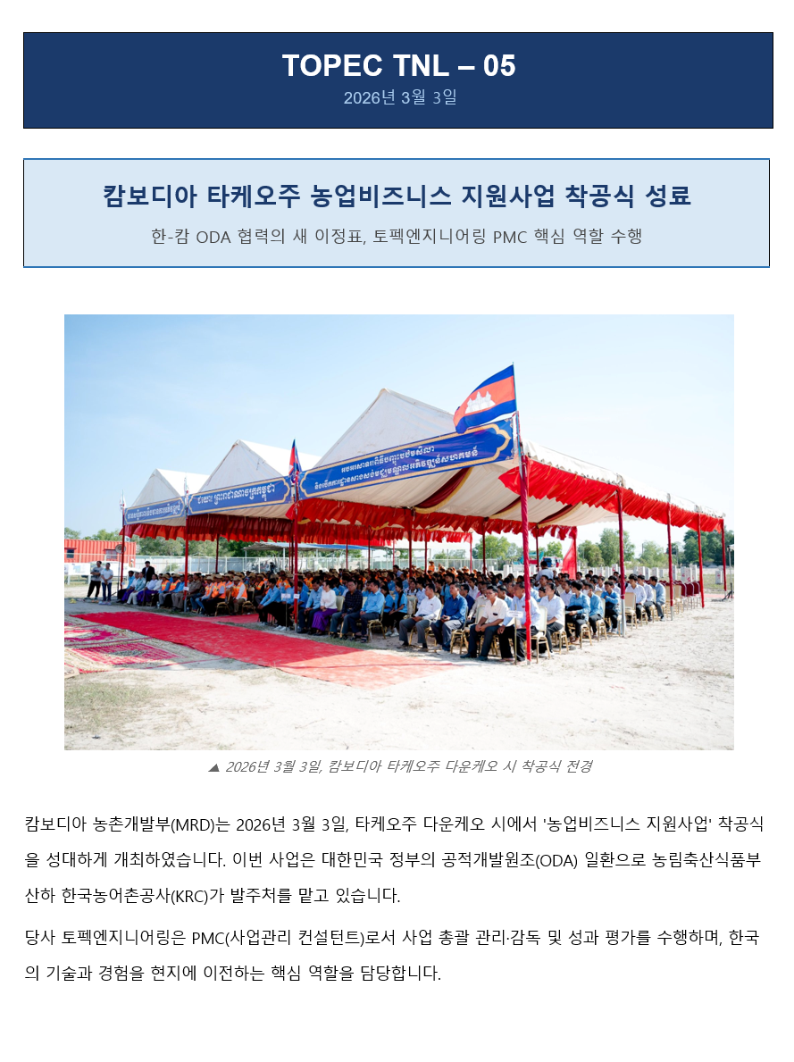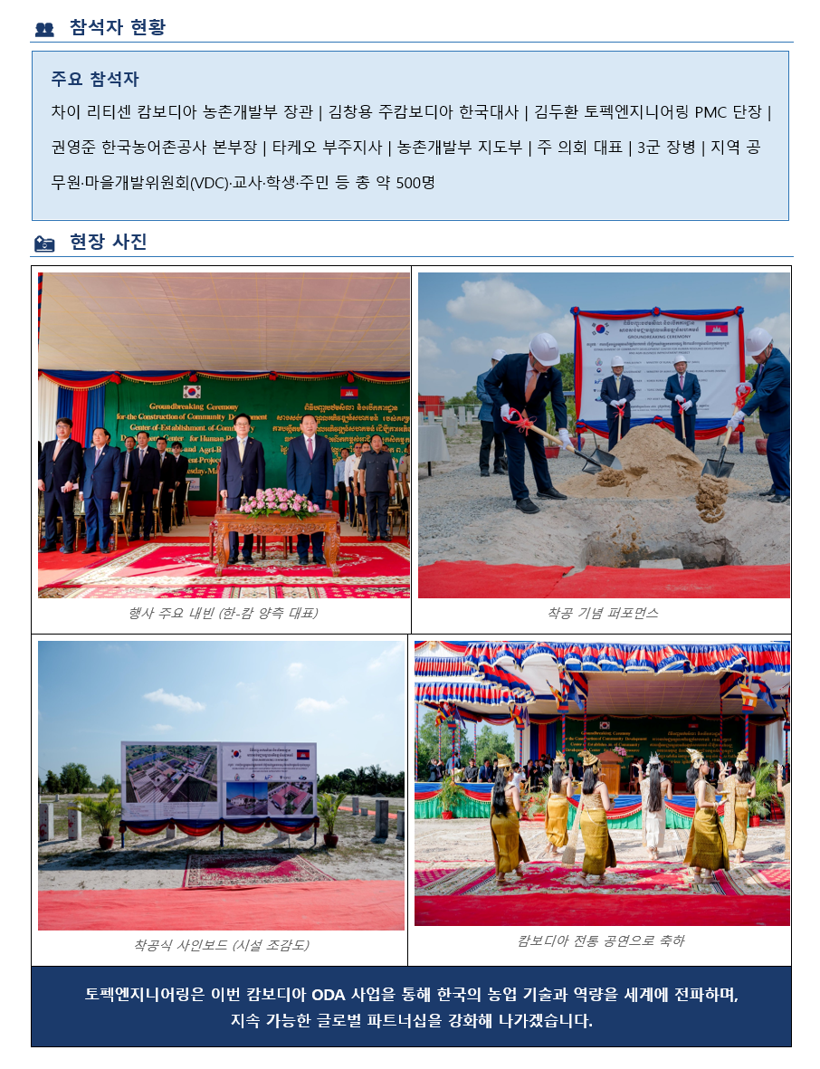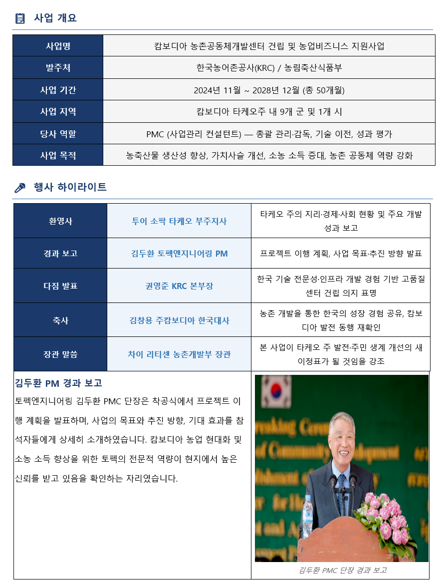 - 캄보디아 타케오주 농업비즈니스 지원사업 착공식 성료