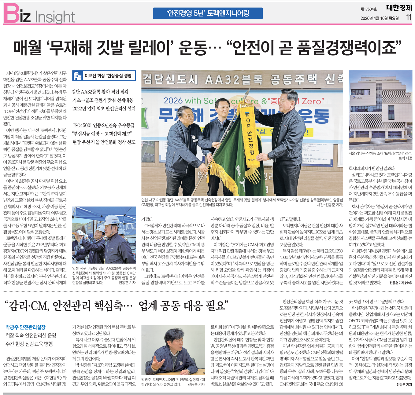 - 대한경제 '안전경영 5년' 무재해 깃발 릴레이 운동관련 기사