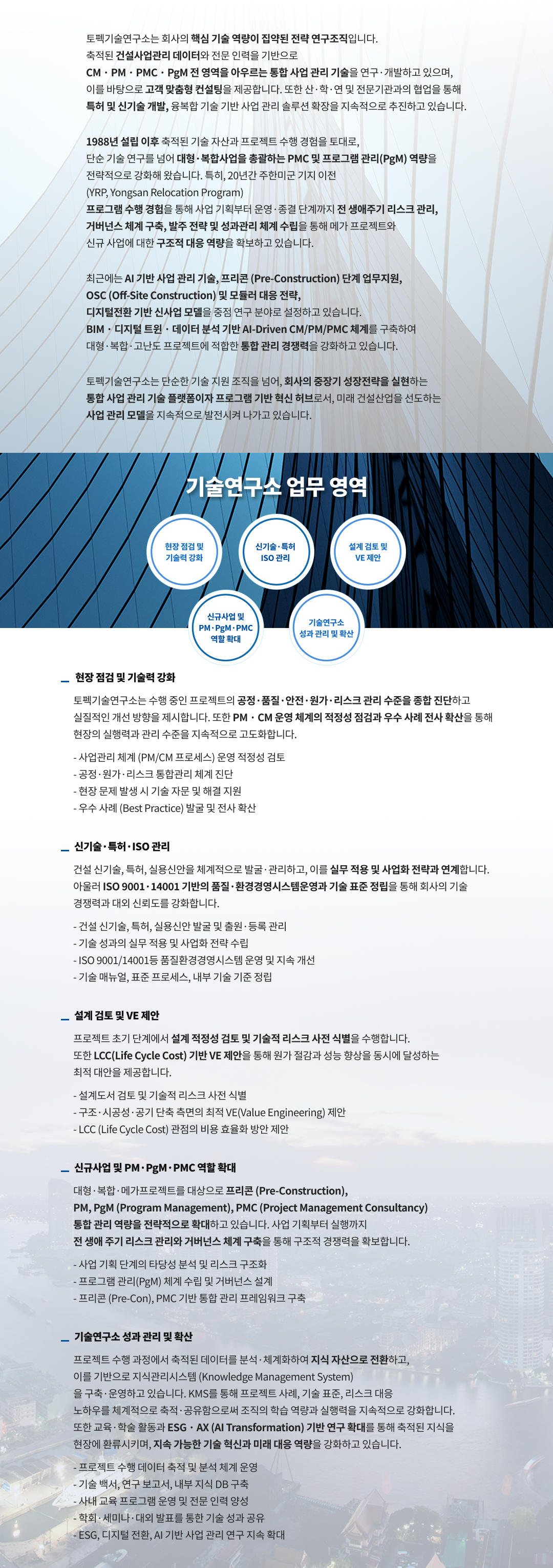 CM · PM · PMC · PgM 전 영역을 아우르는 통합 사업 관리 검증 카지노을 연구 · 개발하고 있으며,